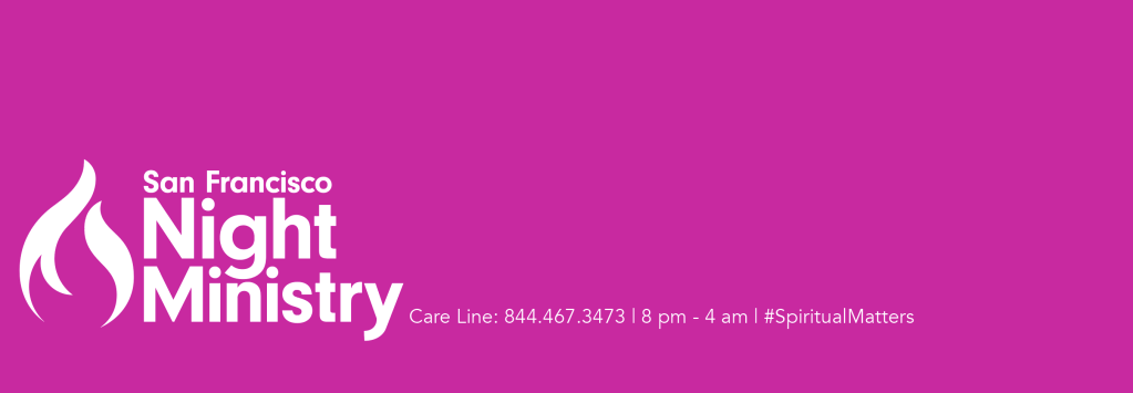 San Francisco Night Ministry walks the street every night of the year, operates a care line, hosts community programs, and holds outdoor worship services. If you want to support the important work of being present with the most vulnerable among us, click on the link above to donate. Want to know more about the work SFNM does or maybe volunteer yourself? Go to sfnightministry.org for more information.