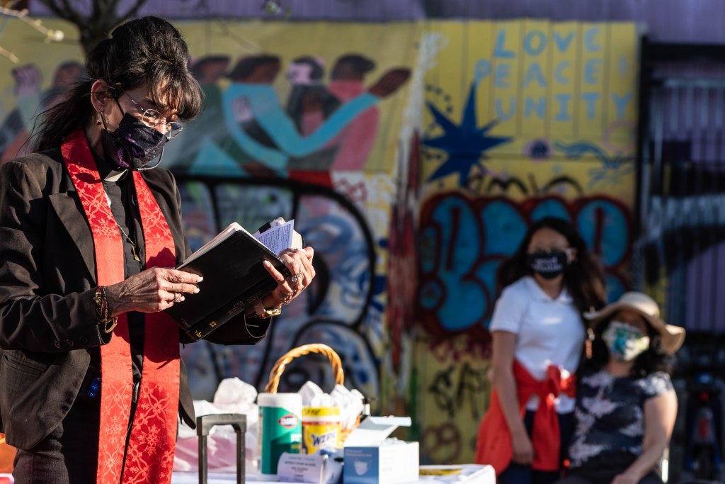 On Sundays, a group of people gathers at the UN Plaza in San Francisco, a little ways away from the farmer’s market. This is Open Cathedral, led by clergy connected to the San Francisco Night Ministry. They do all the things congregations do: they pray, sing, take communion, pass the peace, tell their stories and catch up with other people. But they do it outside, on folding chairs, near a farmer’s market and with police patrolling in the background. Some of the regulars are unhoused, others are housing insecure or are struggling in other ways to make ends meet in San Francisco.